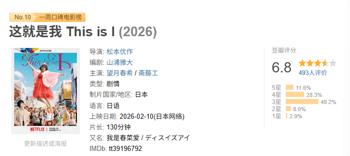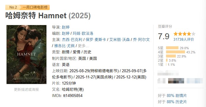 同时,一周豆瓣口碑榜也可以了解下。我们一起来看,这一周,又有哪些新的影片上榜吧。