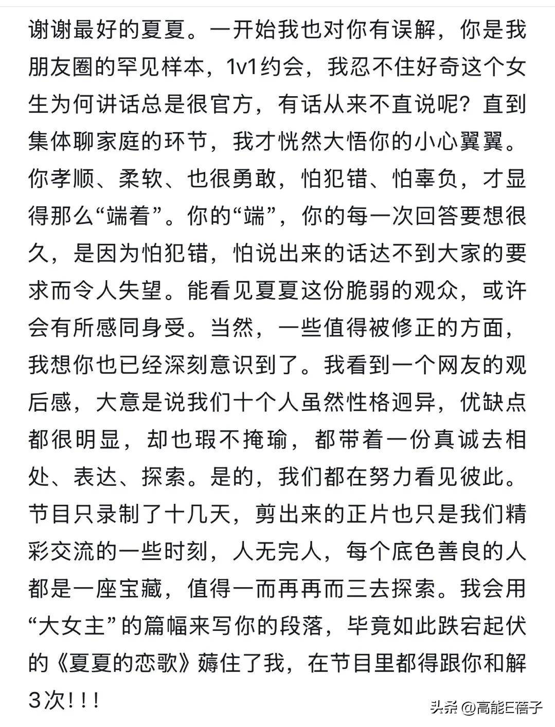 这档节目有趣之处在于,它表面是恋爱综艺,实则嵌套职场元素:同处一屋檐下生活、合作、排练、演出,把同事和恋人两种关系放在同一容器里摇晃。原本毫无交集的人被迫相处、磨合、展示真实自我。第一印象在这里往往作废,有的人起初顺眼,处久了不一定;有的人起初来气,处久了却觉得还行。吴牧融属于后者:从这人哪来的自信到骂着骂着骂不下去了,这就是综艺的观察价值。他像个魔丸,硌手但位置稳固,比那些完美无瑕的瓷瓶有趣得多。做有深度的心灵SPA,讲有格调的故事!喜欢就分享吧!么么哒!E姐换新Logo啦,各位闺蜜认准正版! 都市男女的心灵SPA,以学术的严谨看贵圈未经许可,谢绝转载。