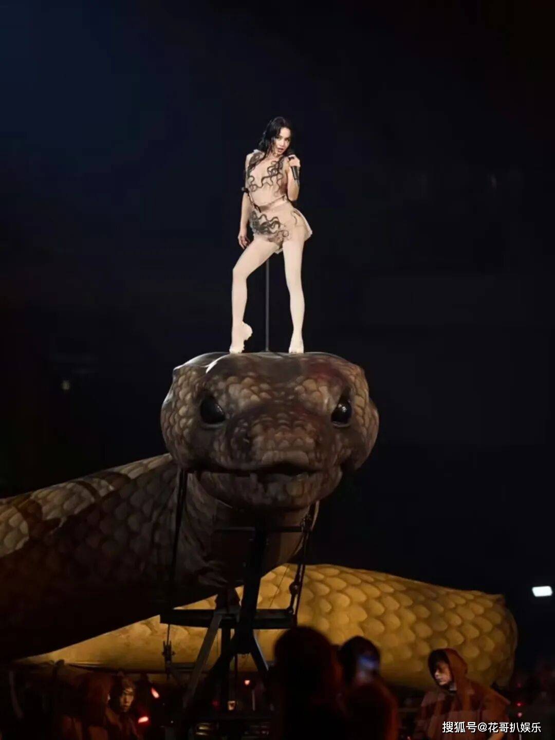 如果只是这么一条大蛇还不算什么,问题是舞台上不只有大蛇这一个诡异元素,白袍女巫、暗黑魔鬼形象、仪式感十足的祭台等道具轮番登场,整体风格偏向神秘暗黑,很容易让人产生不好的联想。网络上随之出现各种猜测,有人将舞台元素与邪术献祭绑定,甚至传出吸粉丝运势的说法,尽管这些说法没有实质依据,却让这场演唱会的口碑彻底跑偏。
