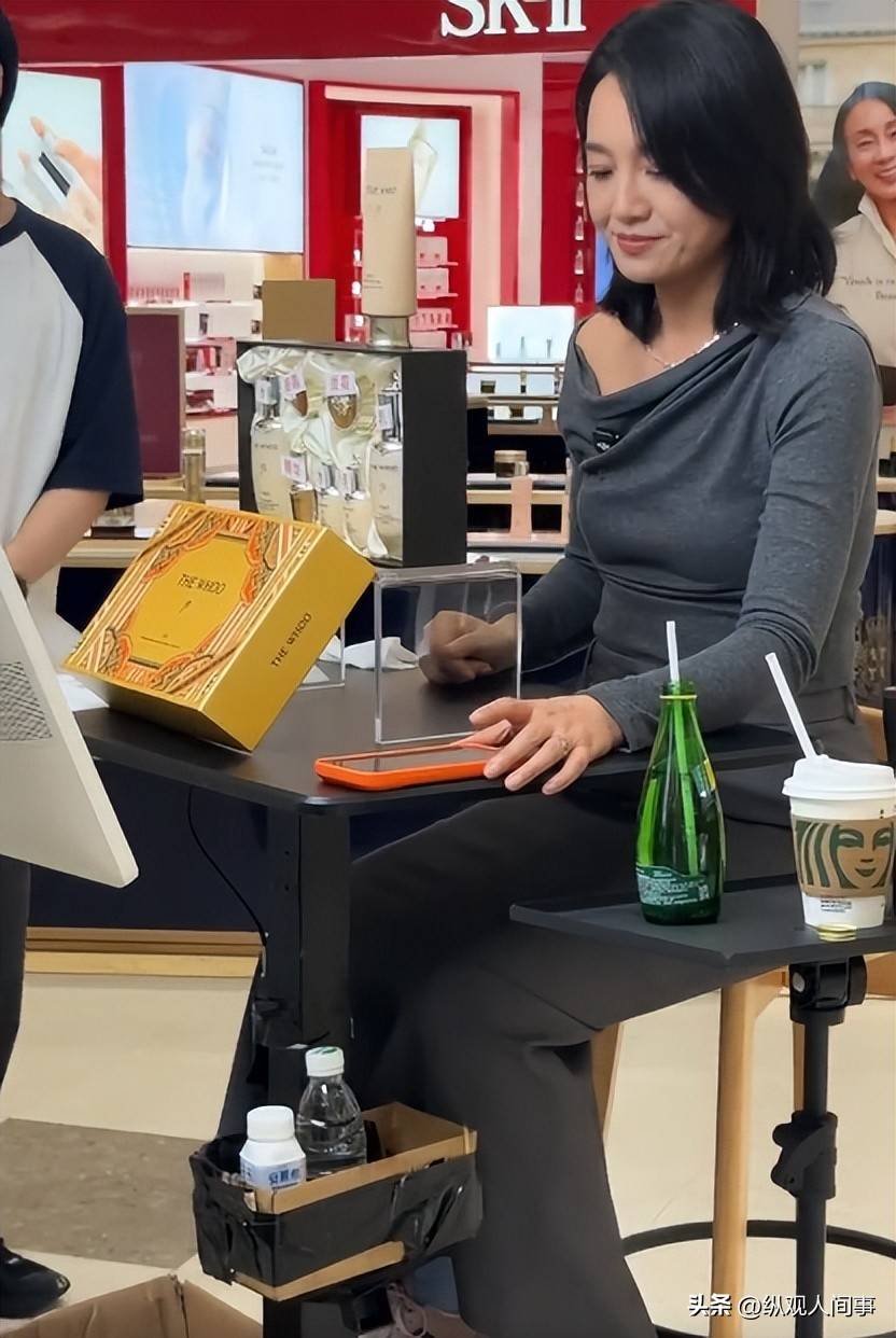 近日,南方某免税商场的美妆区里,一场没有华丽布景的直播吸引了不少路人目光——镜头前的朱丹穿着休闲灰调套装,坐在简易木凳上,身前摆着普通饮品,头发随意披散。没有舞台灯光的修饰,她的眼角细纹在自然光下清晰可见,坐着时身形也少了往日挺拔,混在往来顾客中,几乎像个忙碌的职场人。