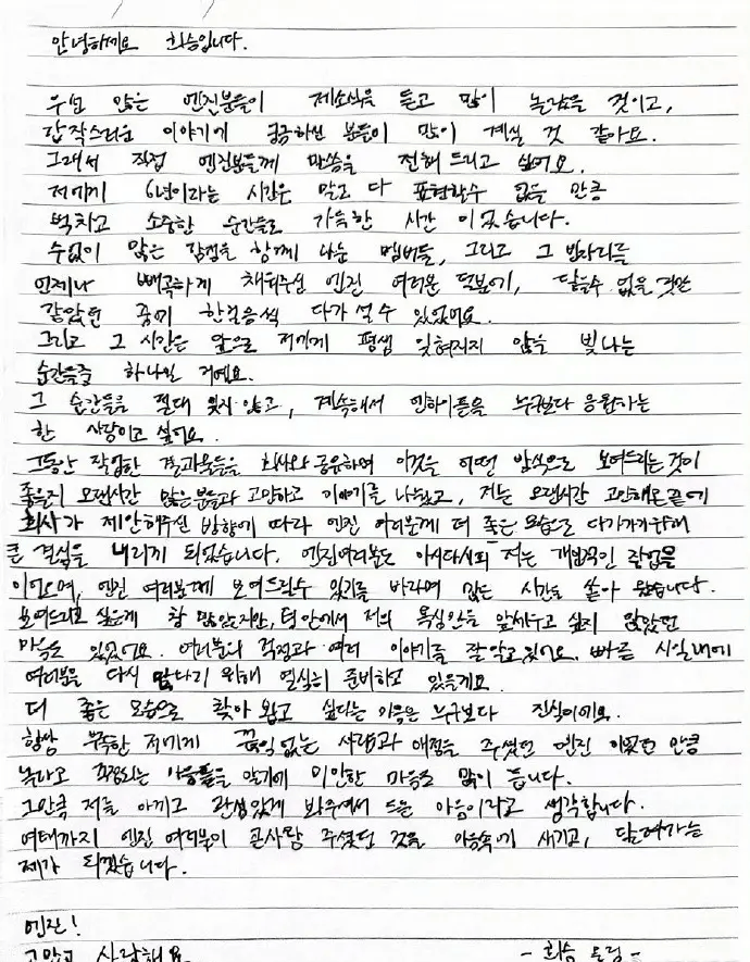 随后,李羲承发手写信回应,表示思考了很久,终于下定决心,按照公司提出的方向,“我坚持做我的个人工作,花费了这么长时间,希望能更好地呈现给大家。”“为了尽快和大家见面,我们会努力准备的。”