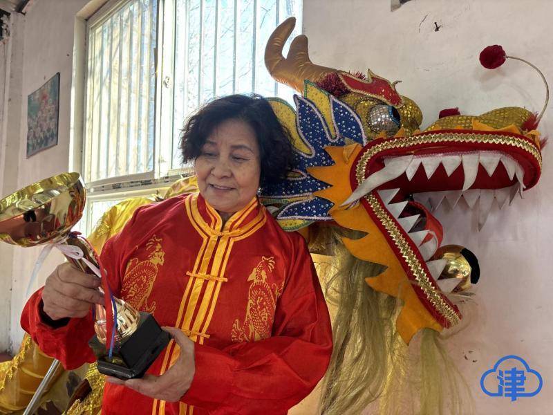 这两年,周边的中小学找到周则珍,请她去小学给孩子们当舞龙辅导员。第一次听到这个消息时,她高兴地直拍大腿,跑到活动室里,把要带去学校的舞龙擦了又擦。她手把手教孩子们拿杆、走位、盘龙,看着孩子们挥舞着小龙,周则珍的眼里是欣喜,也是希望,“咱这支女子舞龙队,要一直舞下去,让咱中国的舞龙,在村里、在天津,也一直舞下去。”