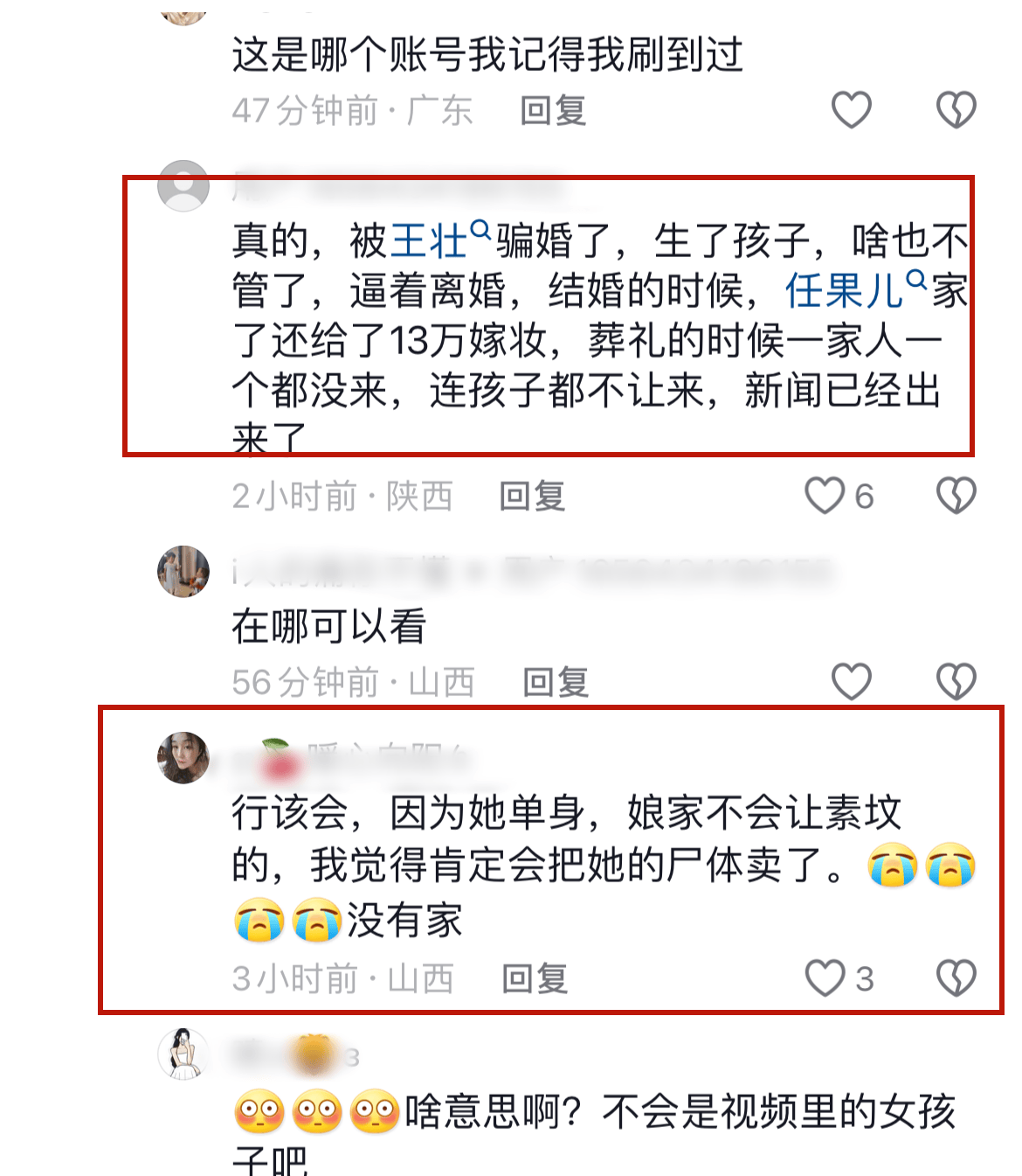8月13号,有一位来自山西晋中的网友分享了一段悼念的画面,并在留言处感慨的说哦大:一别再无期,从此再无你,话题中添加了“任果儿”的标签,据悉,任果儿是一位并不知名的网红,名叫果仁儿,去世的时候只有25岁。