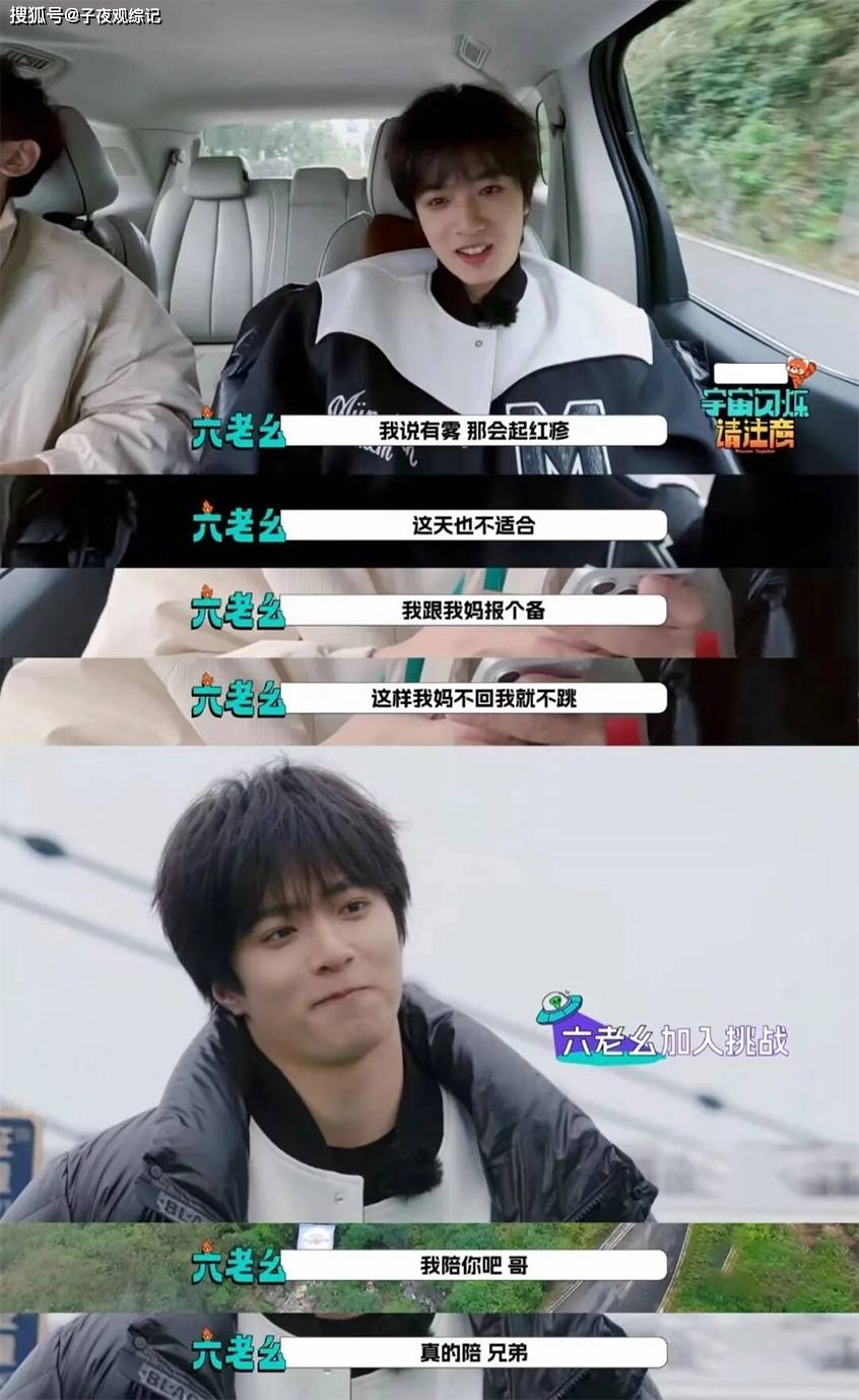以前总觉得他是喜欢耍帅的"小孩哥",结果节目里他细腻得像个"幼师"——黄子韬情绪低落他秒哄,王鹤棣要挑战高空荡绳他明明害怕还主动陪跳。