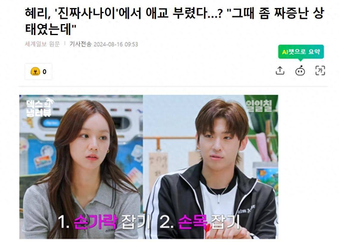 韩国知名女星,女团Girls Day出身的演员李惠利,透露了在综艺节目《真正的男人》中,成为热门话题的场景背后的故事,该节目的一段场景使她一举成名。