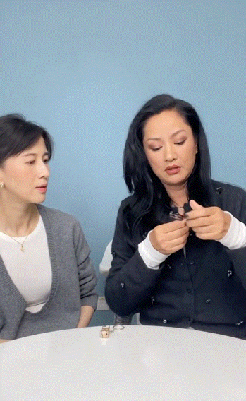 把第二个拿出来展示的时候,Papi说戴上很像一个阔太太,瞿颖立马接口说“这是便宜太太”。