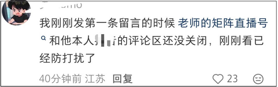 张雪峰的社交平台还没有辟谣,且矩阵账号直播间也全部突然关停,不知是不是无法回应弹幕上“求辟谣”等留言。而后,有网友留意到张雪峰账号直接设置了“仅允许互相关注的人评论”的防打扰模式。