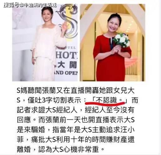 张兰痛斥S妈协助大S卷走上亿台币,为此S妈表示不认识张兰,昔日亲家已经沦为仇人。
