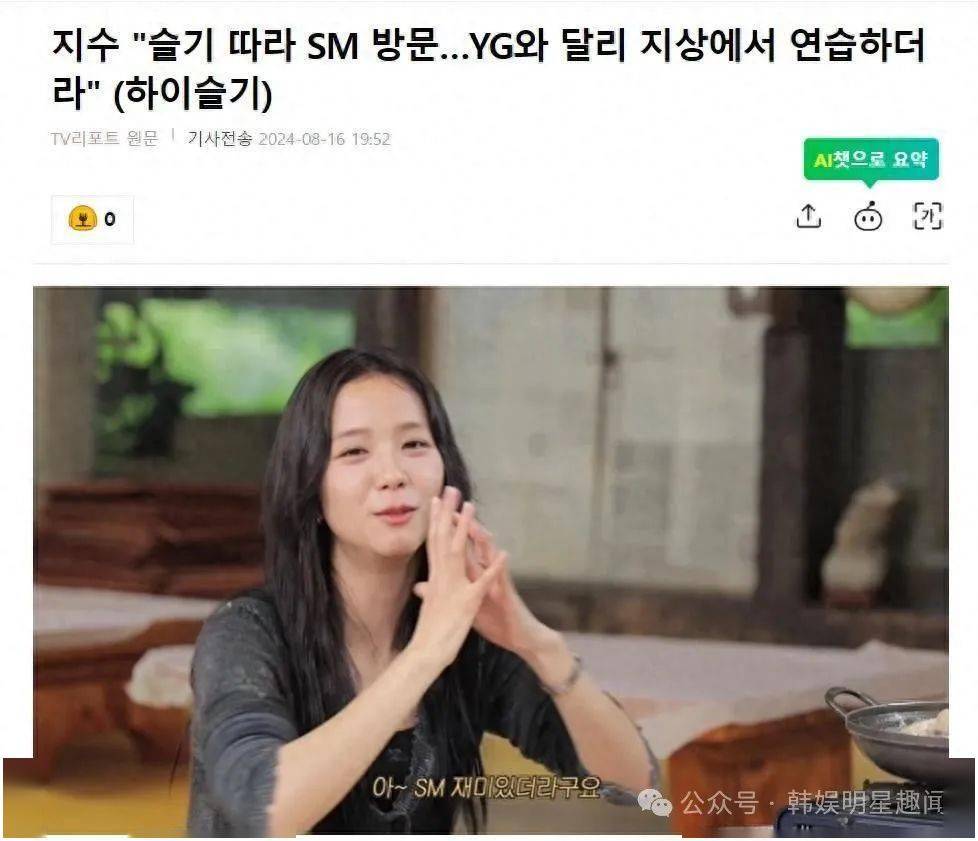 随后,涩琪对智秀说道:“炒年糕的汤消失了吗?我在你家吃炒年糕的时候,炒年糕被切到了底部,汤汁都漏出来了,是一张白色的桌子” ,金智秀说没关系,说道:“还有一点,用它做的炒年糕是不是不会消失?”。对于,韩国知名女星,金智秀透露,跟着姜涩琪去了SM公司,与YG不同,SM的练习室有阳光,大家怎么看呢?