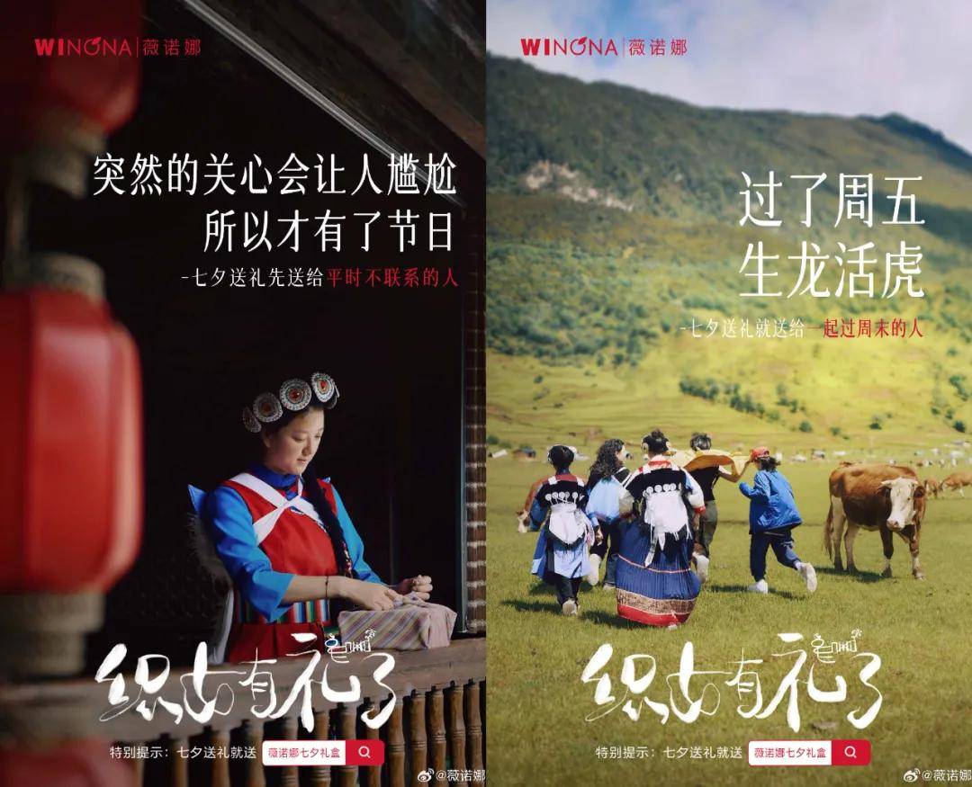 他们深挖乞巧节寓意,以“织女”为锚点与云南织锦深度结合,将品牌的国货属性与国风、民族紧紧捆绑;同时又将打工人与七夕进行关联,拉拢年轻受众的情绪共鸣;整体创意既迎合了七夕的传统,又打破了爱情为本的固定框架,在同行的节日营销中脱颖而出。