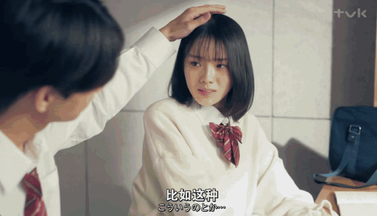 像是男友突然深情靠近她,试图来一个「壁咚」或者「摸头杀」时。