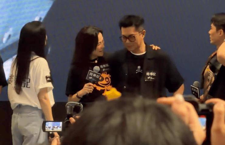 活动现场,一向形象硬朗的古天乐,看到时隔 25年依然深受大家喜爱,忍不住落泪。现场网友拍下的视频可见,古天乐一度低头擦眼泪,身旁的宣萱见状,第一时间伸手拍他肩膀安慰。没想到古天乐随即顺势伸手,温柔抱住宣萱的腰,两人在台上的亲密互动尽显多年默契。