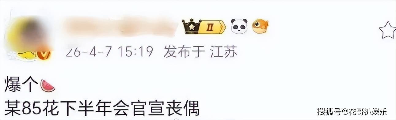 这几天不知道哪个无聊的营销号编了个文字料,说是某85花下半年将要官宣丧夫。不少吃瓜群众都惊呆了?这种东西还有预告的?这是爆瓜还是阎王点名呢?到时候死不了怎么办,现场杀一个助助兴吗?还有无聊的网友开始盘点现在已婚的85花还有几位,这几位姐夫就像上了死亡名单一样。