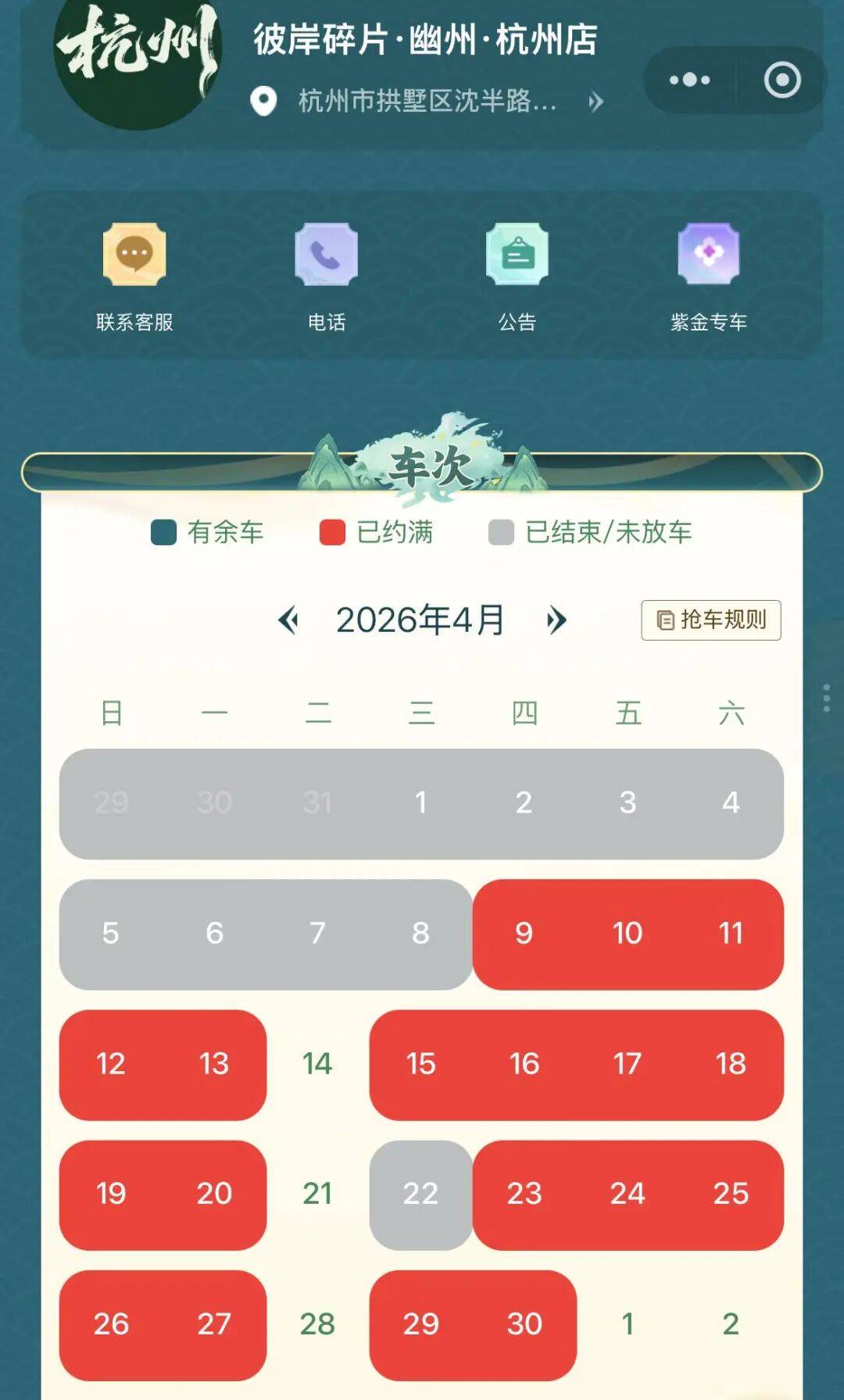目前,“彼岸碎片·幽州剧场”已在北京、杭州、成都、西安各布局一家分店,每家店每天承接2车玩家(即两场),每月共60车。这意味着,每个城市每月最多有600个玩家能抢到“车位”。
