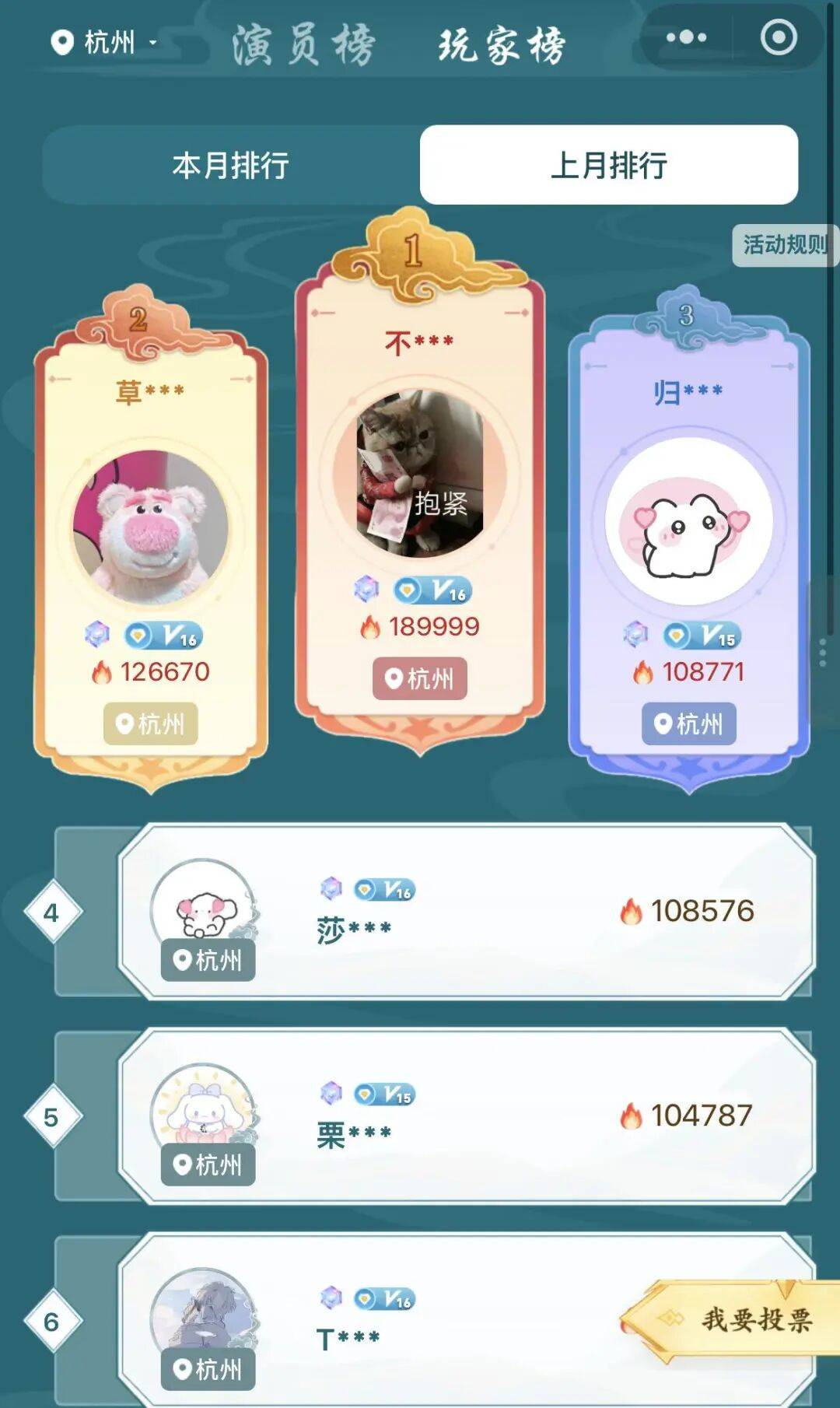 每位演员热力榜支持前3玩家可得到一次该演员卡司指定权。