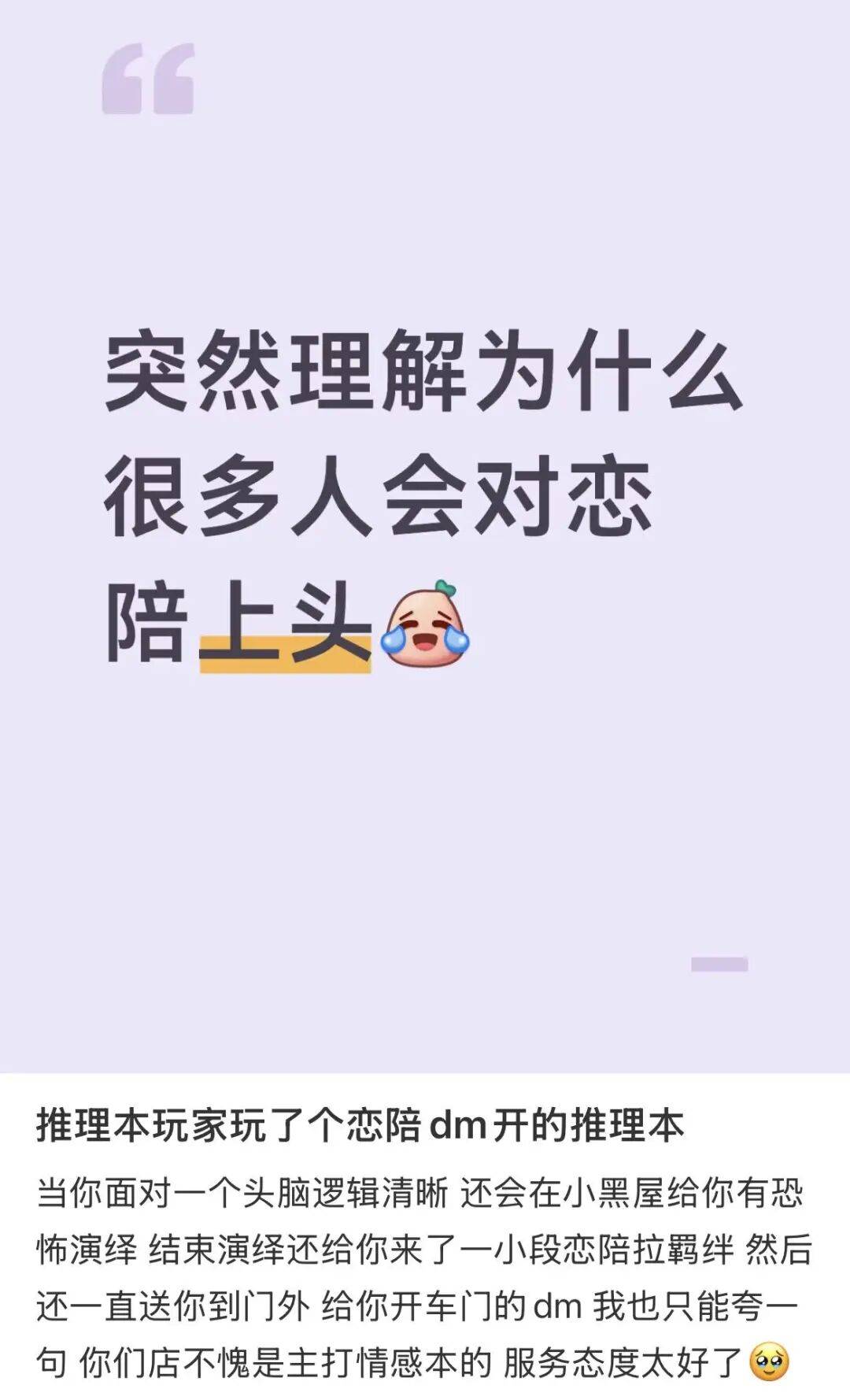 剧本杀的尽头,是恋陪。恋陪的尽头,是DM。DM的尽头,是偶像。
