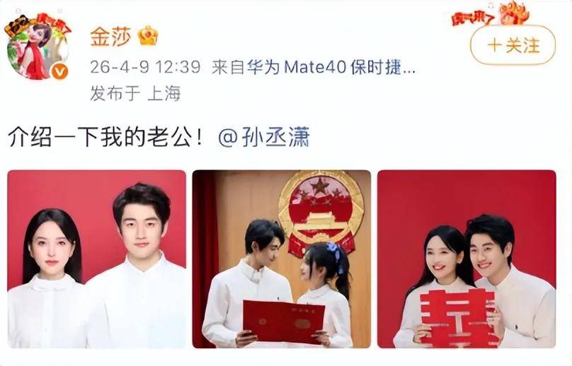 近日,知名演员与歌手金莎,在个人社交平台上发文:介绍一下我的老公!并艾特孙丞潇,随后他发文:介绍一下我的老婆!