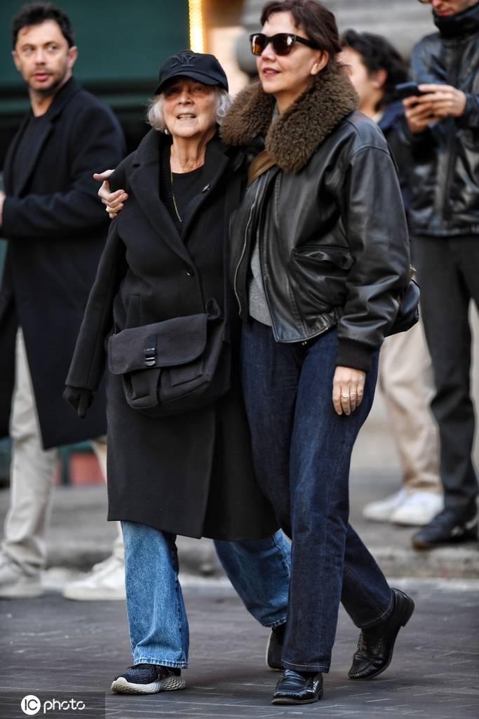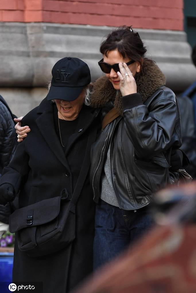 当地时间2026年4月9日,美国纽约,玛吉·吉伦哈尔与母亲娜奥米·福纳·吉伦哈尔现身街头。
