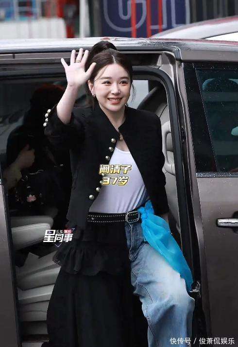 阚清子当天扎了一个高高的马尾,本希望借此让自己显得更加精神,但她的脸部却略显浮肿,原本清晰的轮廓似乎也被软化了。她上身穿着一件小香风短外套,下身搭配牛仔裤,这两种风格混搭在一起,有些不协调。整体来看,阚清子的精神状态确实略显欠佳。