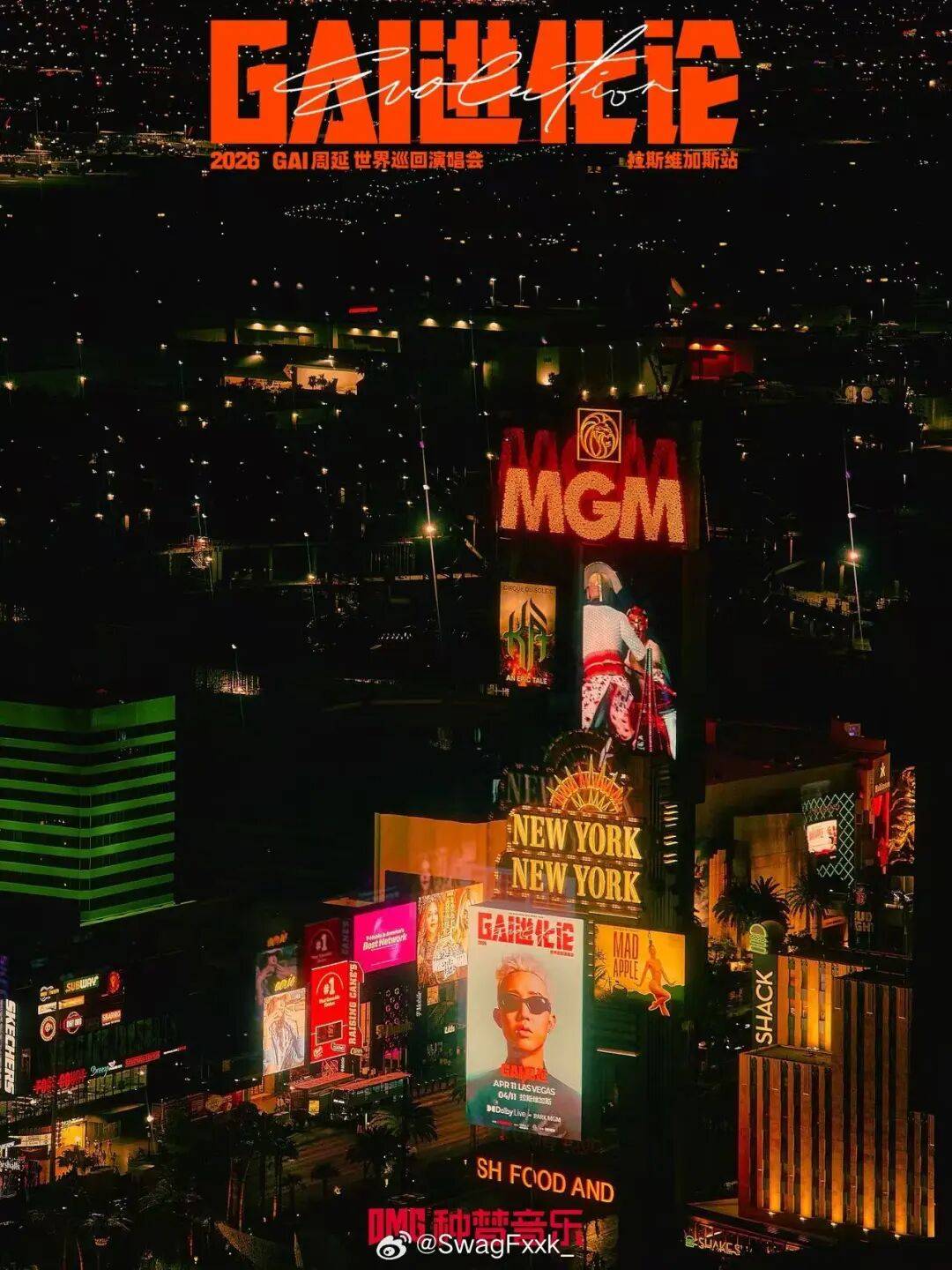 太狠了!拉斯维加斯街头各大广告牌全是GAI演唱会!