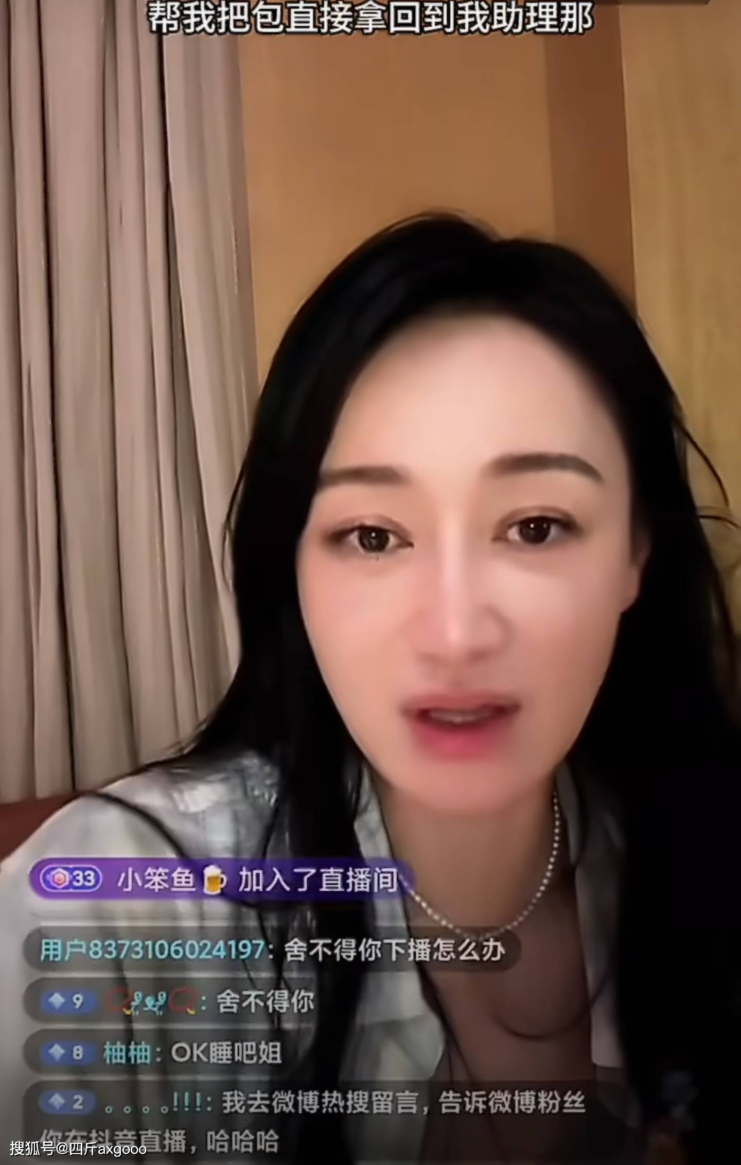 更戳人的是她凌晨开的那场直播,镜头里的她眼睛里带着红血丝,明显是一夜没睡,却全程笑着,自嘲说“我已经被扫地出门了”,拖着行李从姐姐宿舍搬去了酒店。