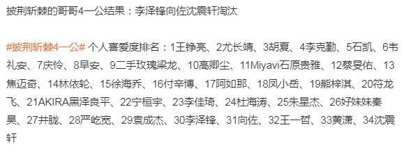 还应该看到的是,在《披荆斩棘4》第一次公演的排名中,李泽峰位居第三十位。