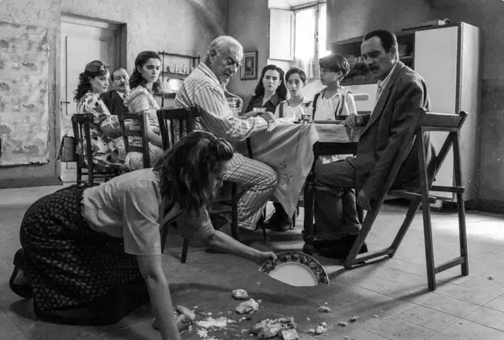 早上,早起的丈夫不满还在沉睡的妻子,于是把她叫醒,然后扇了她一巴掌让她赶紧起来做早饭。住在半地下室的这一家人开着窗户就要忍受街边路人行路时扬起的尘土还有狗狗的尿液,粗糙至极的早餐并没有迪丽娅的一份,因为她是家庭主妇,是当时意大利社会家庭组成中的“女佣”。正因为如此,不仅丈夫家暴她,她的两个儿子也看不起她,满嘴脏话呼来喝去。大女儿赛玛拉初中毕业就辍学打工补贴家用。