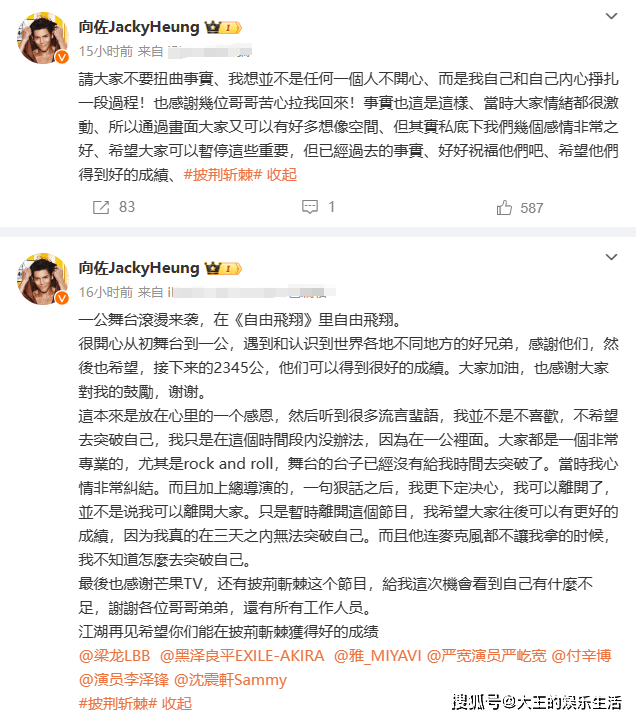 而向佐这个时候也没脾气了,立马道歉认错,疯狂表示自己爱团队里的每一个人。