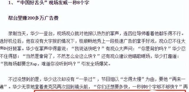 凭借出色的主持水平,加上流畅快速的播报,华少给浙江卫视赚了 200 万。