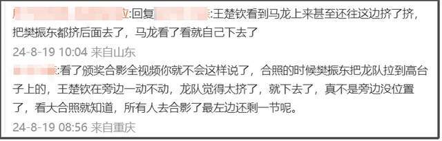 这也引来不少网友不满,为啥不能挪动一下呢,宁可成片的时候,右边空出一大片地方,也不让队友站上来?难道因为旁边是女队的孙颖莎,王楚钦避嫌不想和女队同框?