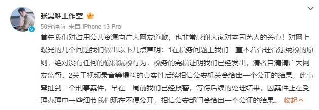 针对视频录音等爆料的“找小姐”事件,张昊唯方表示早在一周前就已经报警,正在等待后续的处理结果。