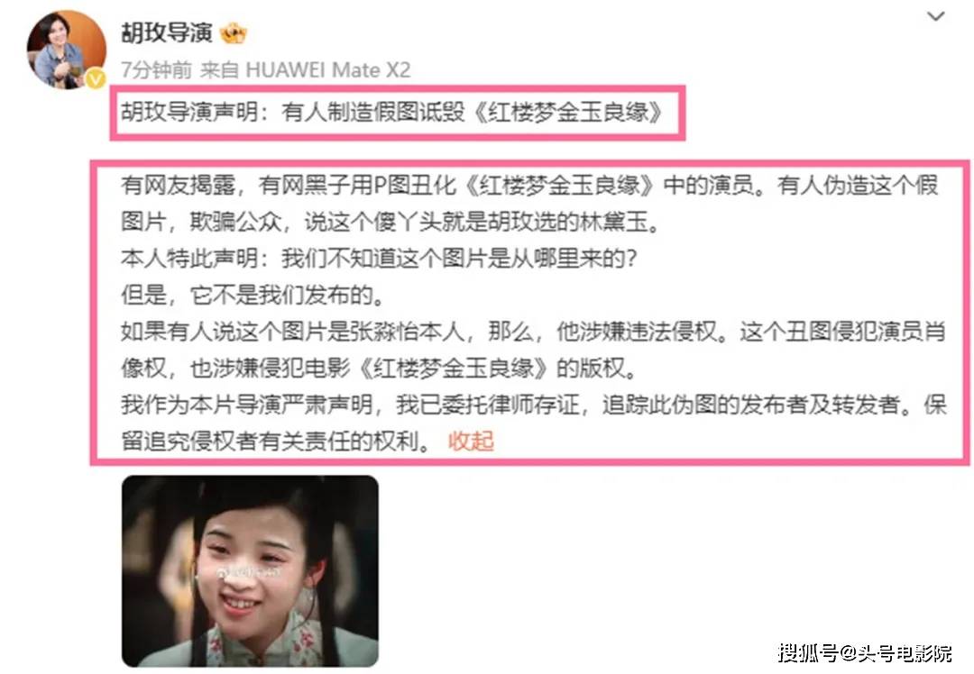 她还发声明,称:有人制造假图诋毁《红楼梦金玉良缘》。