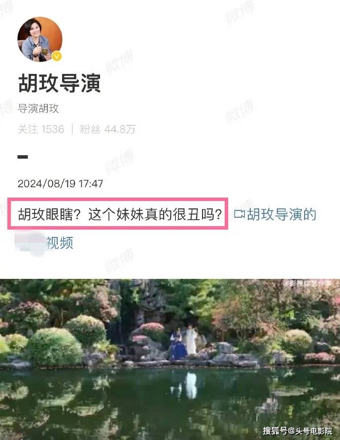 之后,胡玫导演再次发文,晒出影片预告提问:“胡玫眼瞎?这个妹妹真的很丑吗?”