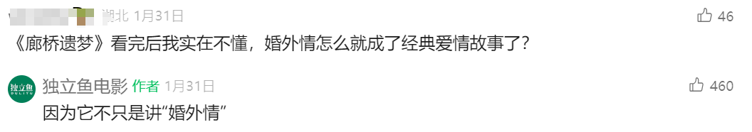 鱼叔写了一篇相关的稿子,评论区便出现不少对经典婚外情题材作品的质疑。