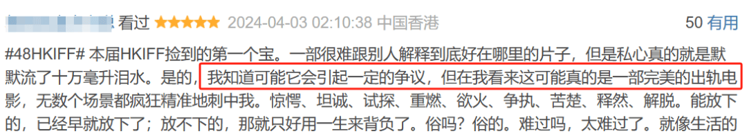 有趣的是,虽然争议满满,「婚外情」话题的讨论在银幕内外依然经久不衰。