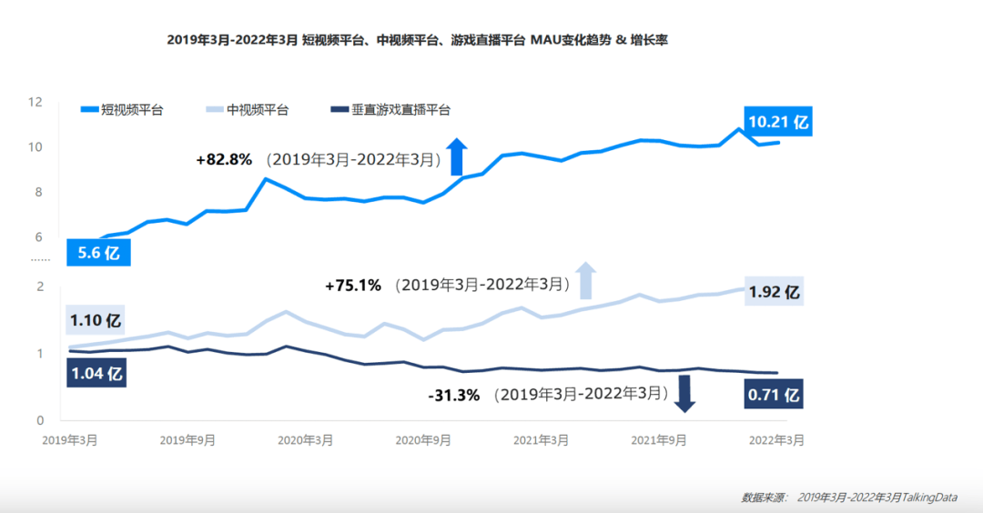 而对于用户来说,数据也更为直观。据Talking Data的报告,自2019年3月开始垂直游戏直播平台用户规模持续下降,对比之下,泛视频类平台快速崛起。用户希望可以通过一个娱乐平台,一站式获取自己需要的线上娱乐内容,垂直游戏直播平台流失用户中近一半迁移到了短视频平台,其中62.9%流向抖音。