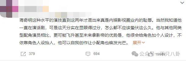 还有的甚至说,蒋奇明混到现在才算有点火,是内娱的耻辱↓