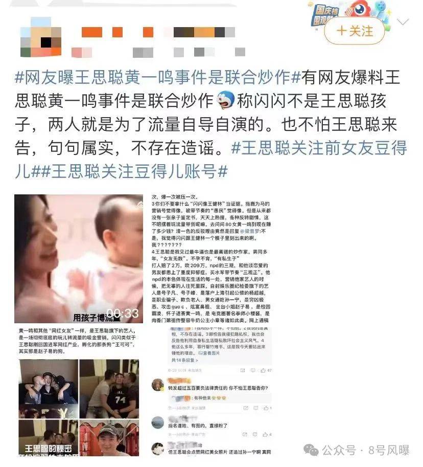 博主还爆料,现在闹得沸沸扬扬的黄一鸣事件,黄一鸣的女儿也不是王思聪的孩子,整件事就是一场巨大的营销炒作。