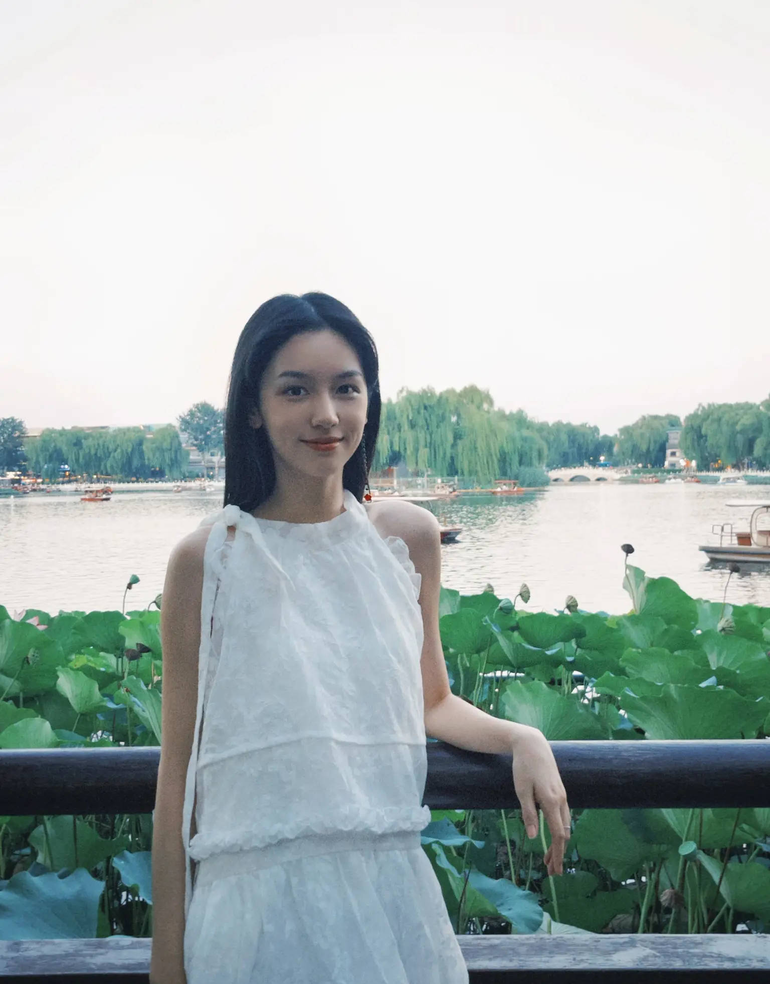 周也穿无袖白裙清新靓丽,有种邻家女孩的即视感!