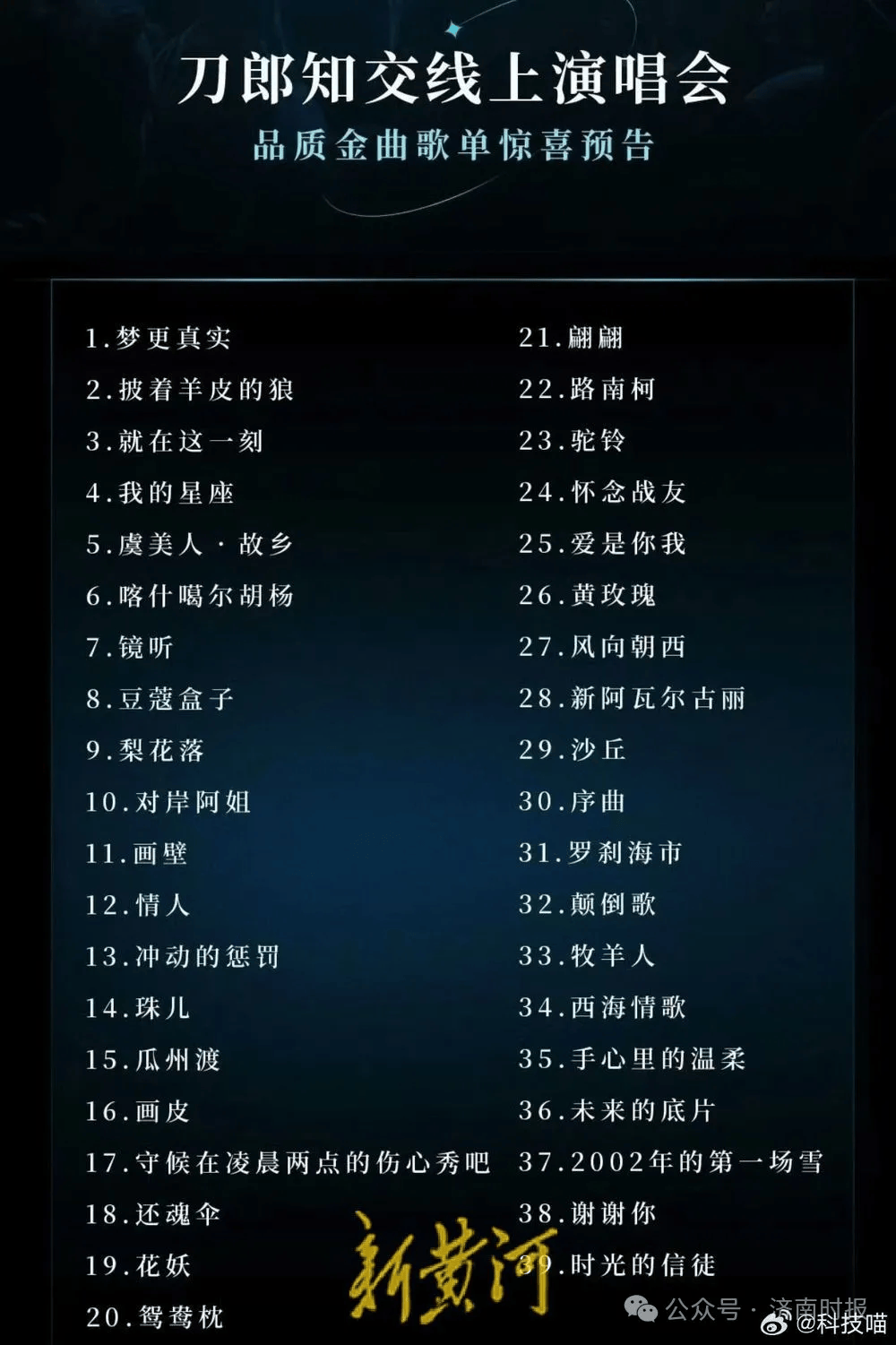 除了线上演唱会,此前有网友传言称,刀郎还将在全国多地开巡回演唱会。据红星新闻此前报道,“刀郎《山歌响起的地方》巡回演唱会”已在成都、广州通过审批或许可。