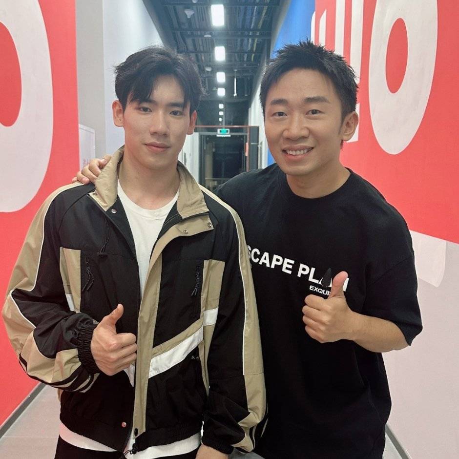 张博恒和李雪琴合影,一人竖大拇指一人比耶。