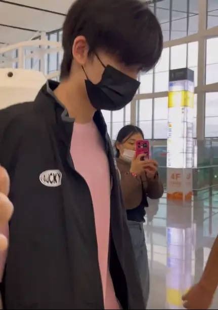 余宇涵在机场看手机。