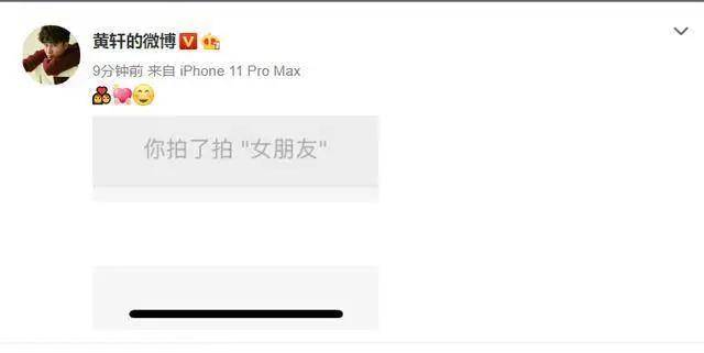 关于黄轩的感情状态,最近承认恋情则是在2020年6月30日,黄轩被拍到与一女子亲密出行后便大方在微博上承认恋情,晒出聊天截图“你拍了拍女朋友”,官宣自己正在甜蜜热恋中。