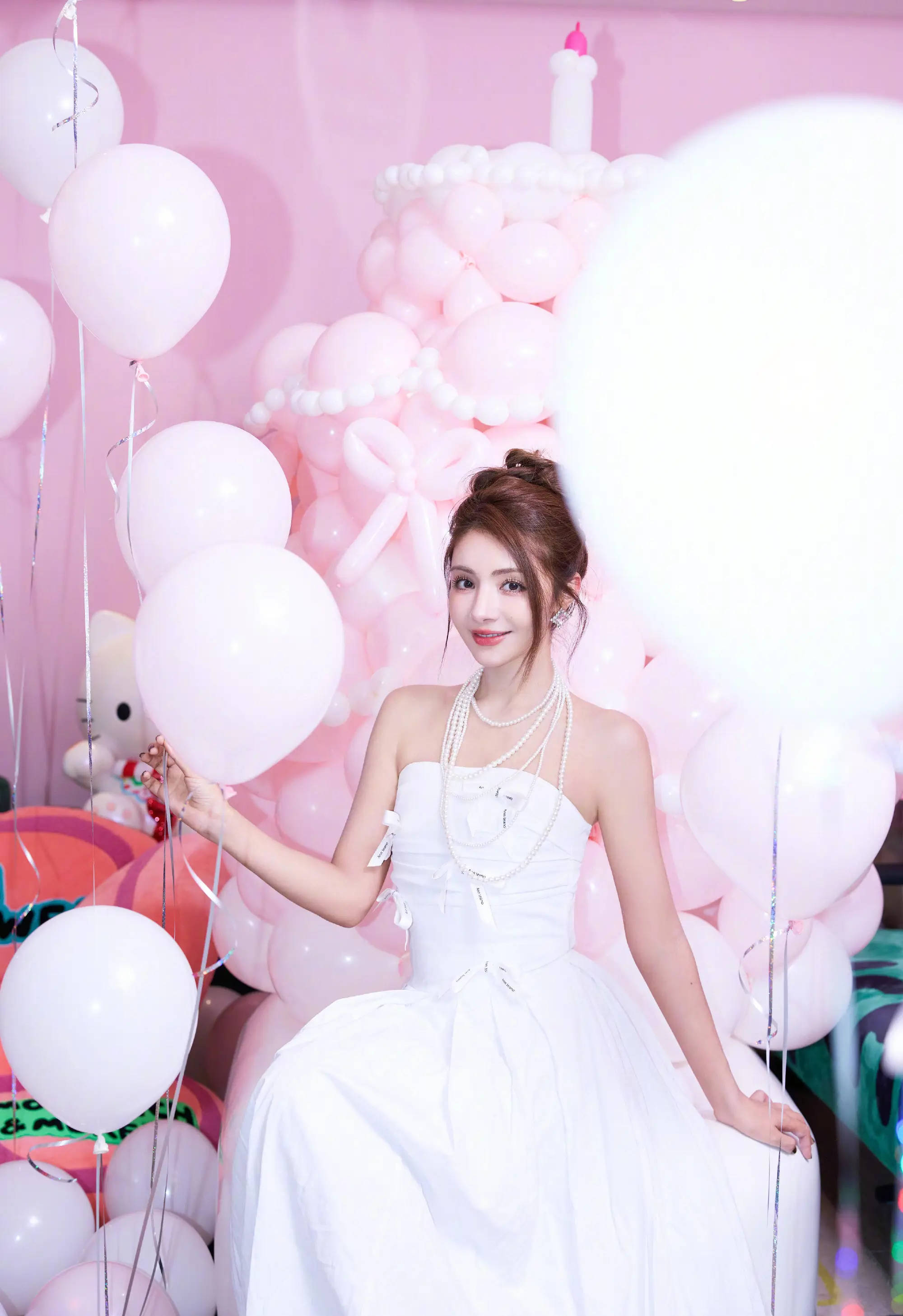 麦迪娜穿白色抹胸裙甜美迷人,好养眼。