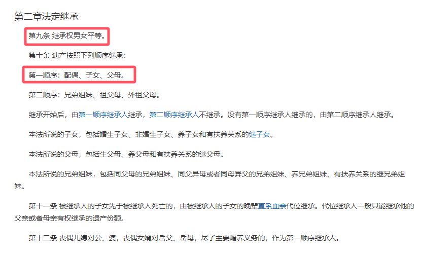当然,我们也讲法律的,根据国内的《继承法》来说,第二章就明确规定了继承权是男女平等,而第一顺序的继承人是配偶、子女和父母,而徐少强的父母都已经去世了,而自己的老婆也在办完葬礼后突发心脏病去世了,剩下能继承财产的人,也就只剩下他的子女,也就是说,按照这条法律来,徐少强的财产就是他们子女对半分。