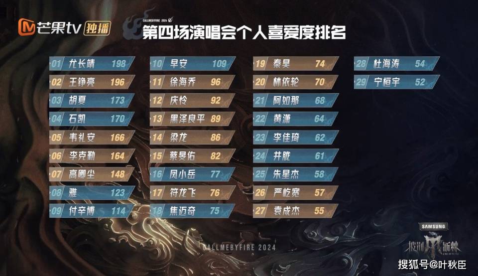 本届哥哥和姐姐的重复选曲实在太多了,这轮又用了《屋顶着火》,之前还有《精卫》《问风》以及《负重一万斤长大》。