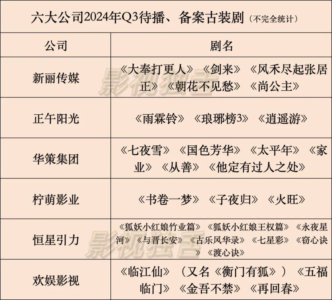 盘点接下来华策、正午、新丽、柠萌、欢娱、恒星引力的待播、备案古装剧,可以看出,各家都拿出了看家本领布局这一重要领域。要么在特殊背景和典型人物方面做文章,要么讲究反套路、极致化、推陈出新。