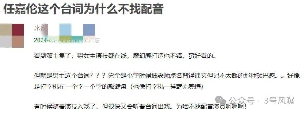 从剧中不难看出,语气、咬字以及情绪表达,任嘉伦确实存在一定瑕疵,网友纷纷说对他是滤镜破碎,大失所望。