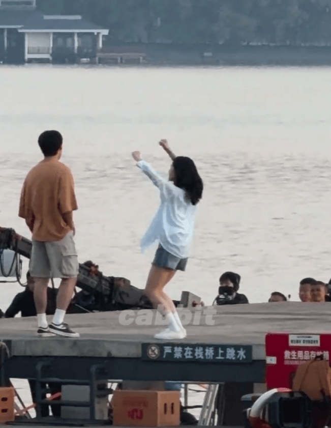 张婧仪在拍摄过程中欢快起舞。