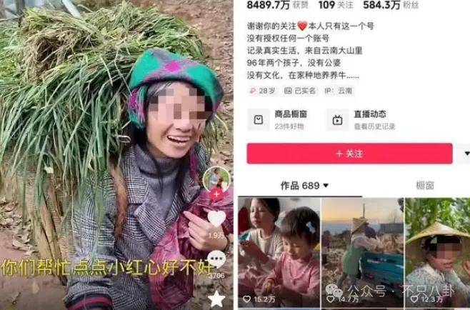 账号简介为“来自云南大山,96年2个孩子,没有公婆,没有文化,在家种地养牛”↓